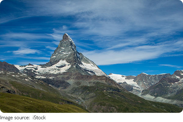 Its distinct pyramidal shape makes it an iconic symbol of the Swiss Alps.