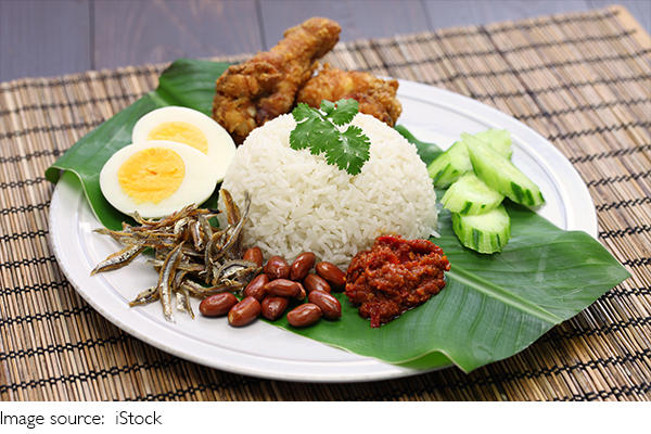 - Nasi Lemak: A fragrant rice dish served with sambal, fried anchovies, peanuts, and boiled egg.