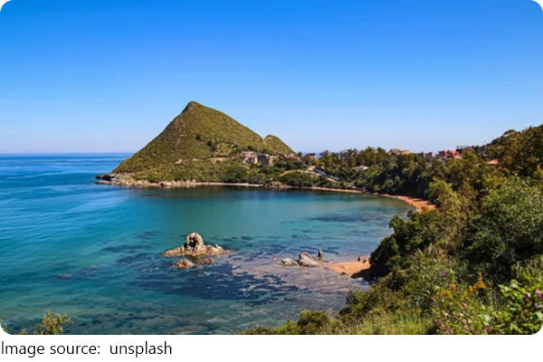 Located in the Bejaia province of Algeria, Yemma Gouraya National Park is a protected UNESCO Biosphere Reserve. This scenic paradise is renowned for its rugged mountains, panoramic sea views, and lush biodiversity. Rising 660 meters above sea level, Mount Yemma Gouraya overlooks the Mediterranean Sea and is steeped in local legends and spiritual significance as it is believed to be the resting place of Bejaia's patron saint, Yemma Gouraya.
