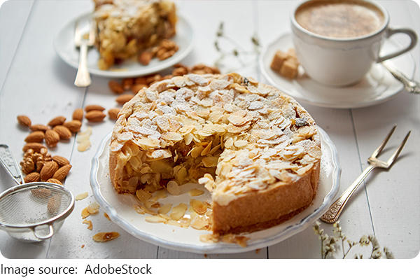 Almonds lend a nutty, buttery flavor to the cake while adding texture and depth. They can be incorporated in various forms—ground almonds, almond flour, or sliced almonds for garnishing. Almonds also enhance the cake's nutritional profile, providing healthy lipids, protein, and a dose of vitamin E.