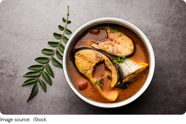 The tangy notes in this curry come from Malabar tamarind, while garlic adds robustness, and curry leaves infuse a warm and bitter aroma. Commonly prepared with tilapia, seer fish, or red snapper, this curry pairs perfectly with steamed rice for a comforting meal.