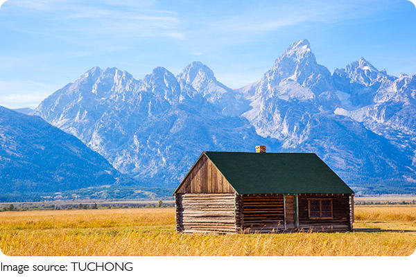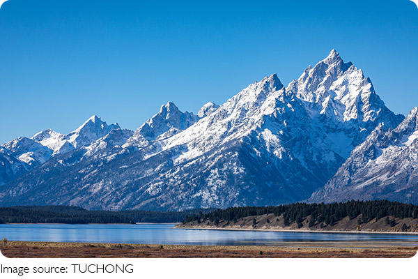 Grand Teton National Park, located in northwestern Wyoming, spans roughly 310,000 acres (1,300 km²) and features the towering peaks of the Teton Range, which stretches for 40 miles (64 km).