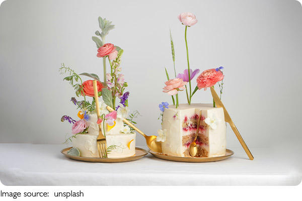 Edible flowers can complement both contemporary and classic pastries. They work well on modern glazed cakes but are equally suited for traditional treats such as Cream Tart, Cheesecake, and Panna Cotta. Wedding desserts also benefit greatly from floral embellishments, adding a timeless elegance to the final presentation.