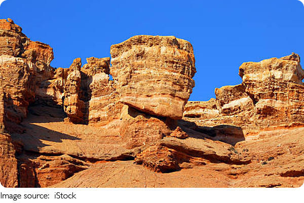 The Aktau Mountains serve as a renowned paleontological site where fossils of prehistoric creatures such as giant rhinoceroses, crocodiles, and turtles, dating back nearly 30 million years, have been discovered. These mountains are also visually stunning with pyramid-shaped peaks in varied hues.