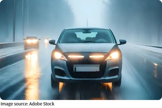 Headlights are our lifeline. Low beams are usually best in fog, heavy rain, or snow because high beams reflect off particles and reduce visibility. Make sure headlights are clean and functioning properly, and consider adding fog lights if your car supports them.