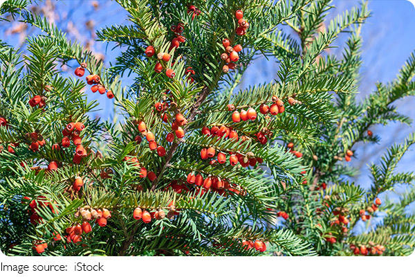 The toxic properties of the seeds and other parts of the Yew are due to the presence of taxines, a group of alkaloids that can be harmful or fatal if consumed in large quantities.