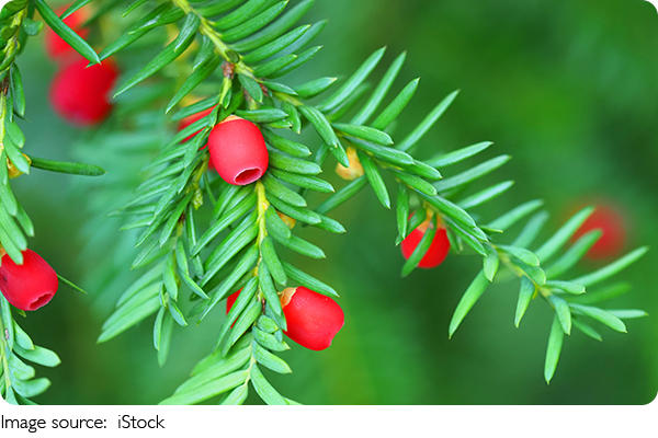 The compound paclitaxel, derived from the Pacific Yew (Taxus brevifolia), has been used in chemotherapy to treat various types of cancer. While the English Yew has not been the primary source of paclitaxel, its taxanes are of interest for further research.