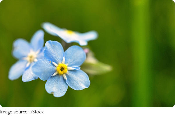 Scorpion Grass, known as Myosotis or "forget-me-not," is a resilient flowering plant cherished for its small blue flowers and curling stems.