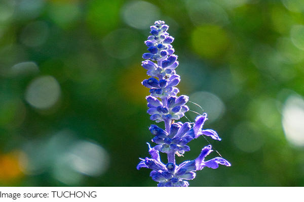 The flowers are produced in a loose, branching cluster, each around 2-3 cm in diameter. They are typically blue or violet but can also be found in shades of pink, white, and purple.