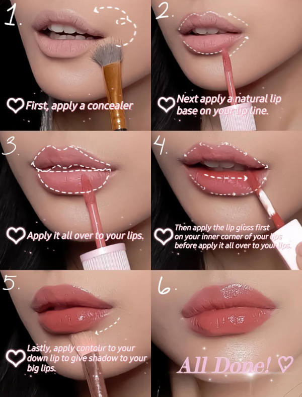 Start with lip balm to soften your lips. A well-moisturized base helps everything glide on better and gives your lips a naturally fuller look.