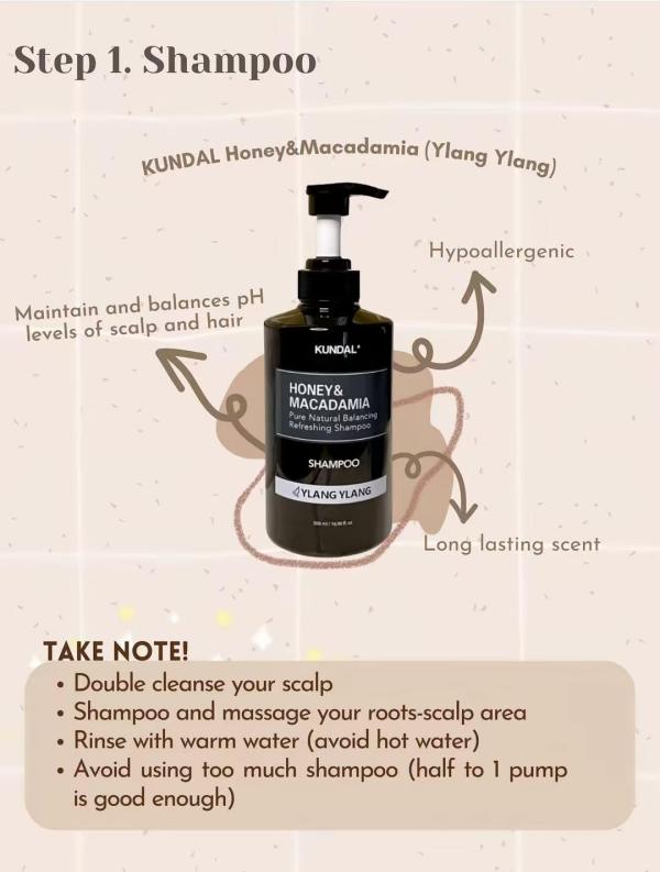 Shampoo: KUNDAL Macadamia (Ylang Ylang scent)