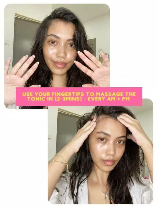 Hair tonic can support hair growth, but consistency matters most. Apply it twice daily—morning and night—massaging gently in circular motions with your fingertips. This helps stimulate blood circulation on your scalp and encourages healthier growth.
