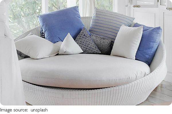 Если у Вас уже мягкий диван — к примеру, из велюра или шенилла — подбирайте к нему подушки из хлопка, канваса или грубого льна. А вот на гладких кожаных или лаконичных тканях как раз хорошо "зазвучат" пушистые или ворсистые текстуры — они создадут уютный контраст.