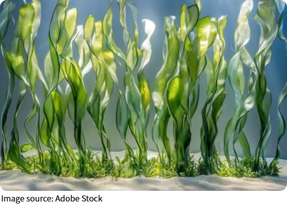 Ламинария — это крупная бурая водоросль, растущая в прибрежных зонах по всему миру. В отличие от микроскопических одноклеточных водорослей, ламинария образует густые подводные леса на мелководье. Эти «леса» кишат жизнью, обеспечивая пищей и укрытием множество морских обитателей — от рыб до морских выдр. Ламинария предпочитает прохладные, богатые питательными веществами воды, где активно размножается.