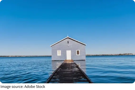 Sometimes, we find places that feel like they were painted by an artist’s hand — perfectly balanced in shape, color, and mood. The White and Blue Boathouse by Perth’s Swan River is one such place.