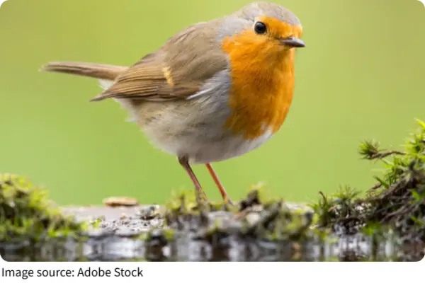 The European robin (Erithacus rubecula) is a small, round-bodied bird with a distinctive red-orange patch on its chest that makes it one of the most recognizable garden birds across Europe. It measures about 12.5 to 14 centimeters in length and is known for its friendly and curious nature. We often find robins close to where we work in the garden, especially when we disturb the soil—an open invitation for worms and bugs, their favorite snacks.