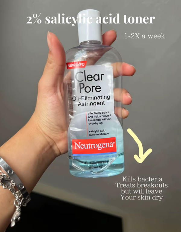 To fight breakouts and excess oil, apply a clarifying astringent with salicylic acid. This step helps clear away any lingering bacteria from sweat and unclogs pores. Just a heads up—salicylic acid is strong, so using it 2–3 times a week is usually enough.