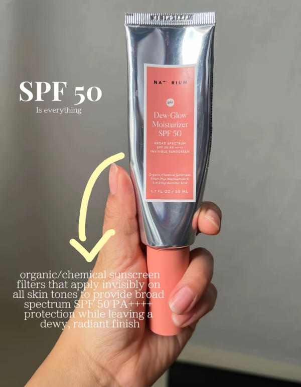 Finish off with a high-protection sunscreen look for formulas that include SPF 50 PA++++ with a dewy finish. A product containing niacinamide and vitamin C derivatives can help brighten and improve your complexion over time. And don't forget to use the right amount—some sunscreens even come with a built-in measuring cap to make application foolproof.