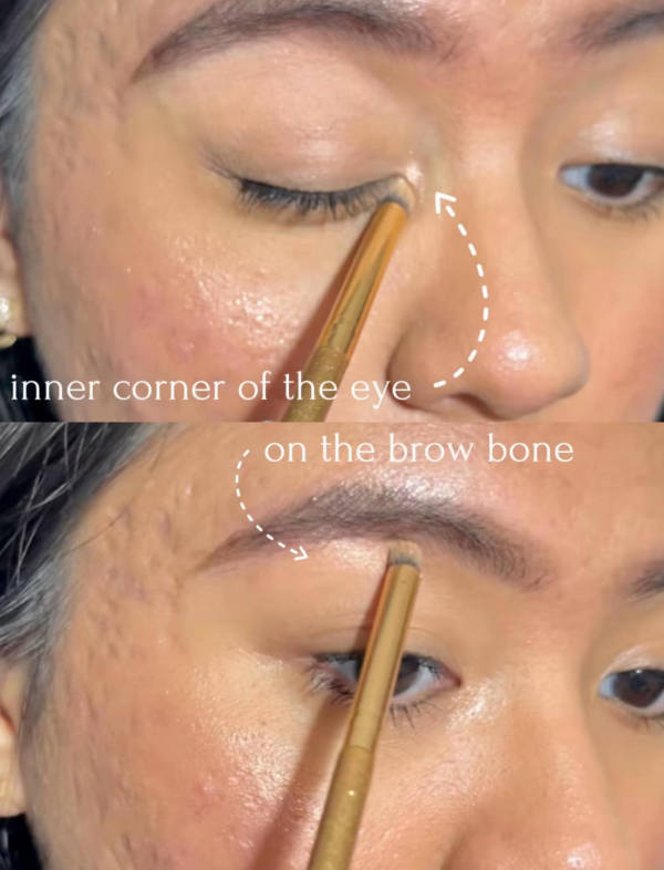 Next, I take a small, dense brush to gently sweep some highlighter onto the inner corners of my eyes and the brow bones. These areas help brighten and lift the eyes for a more awake look.