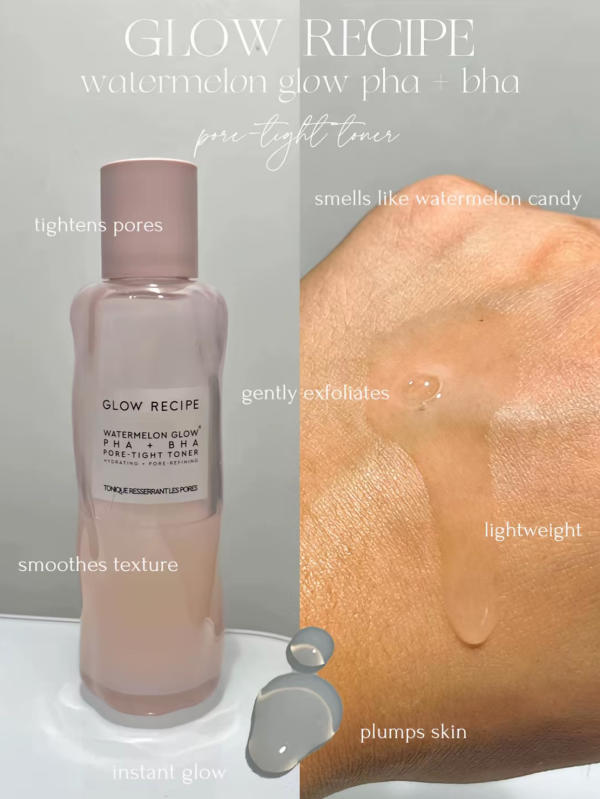 This toner works wonders for smoothing skin texture and minimizing pores. It has a sweet watermelon candy scent—quite strong, but pleasant if you enjoy fruity fragrances. The formula is slightly thicker than typical watery toners but still lightweight and easy to absorb. After using it, my skin feels plumper and carries a subtle glow.