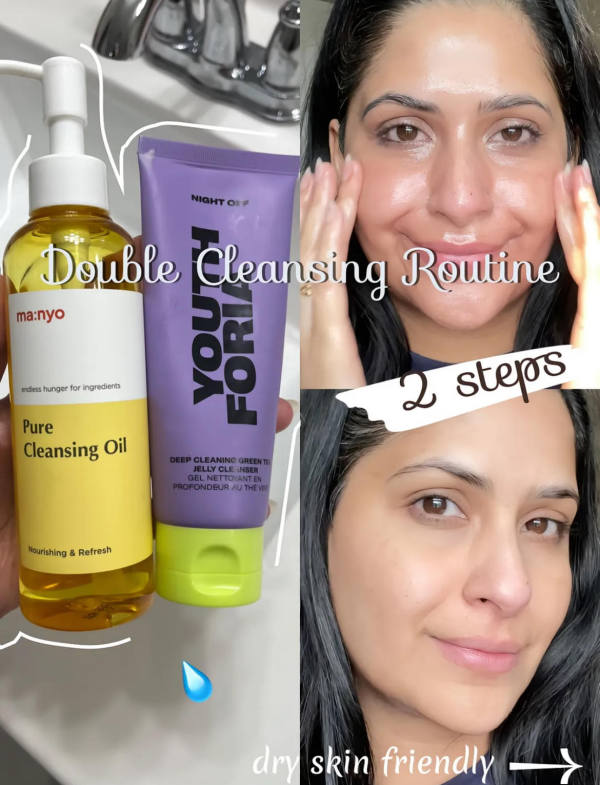Wearing makeup every day means my skin needs extra care and that’s where double cleansing comes in! This method isn’t just a trend for me, it’s a daily ritual that’s kept my skin clear, calm, and glowing for years.