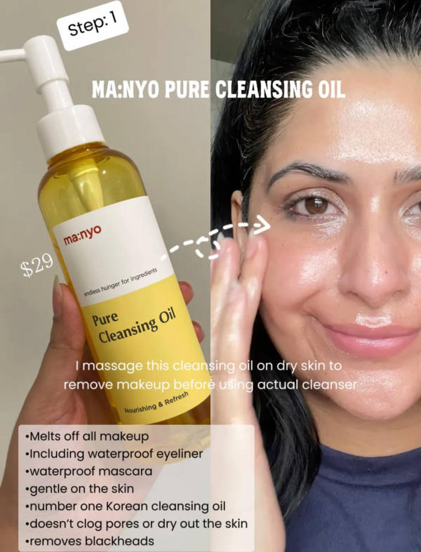 This gentle Korean cleansing oil works wonders! It lifts away every trace of makeup even long-wear mascara and bold lipsticks — while keeping the skin soft and nourished. I massage it into dry skin for about a minute, letting it dissolve all the buildup. Then I wipe it off gently with a reusable pad. It never feels heavy or greasy, and it doesn’t clog my pores.