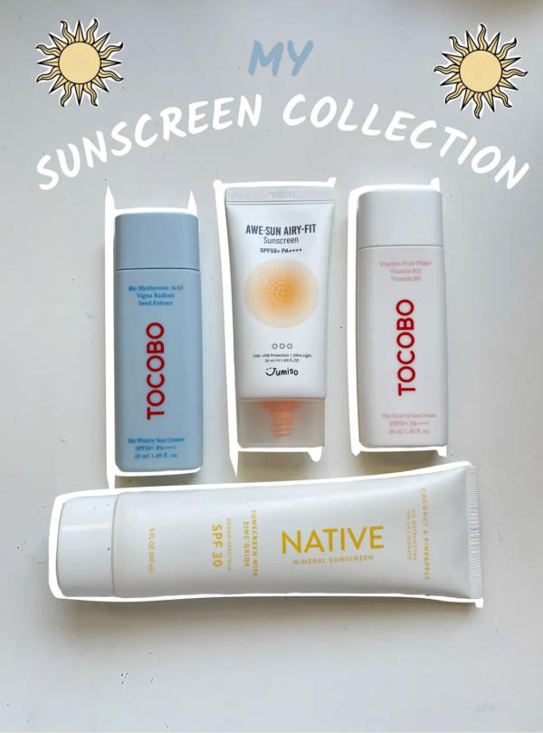 Each sunscreen in my collection has earned its spot for a reason—offering just the right balance of protection, texture, and finish. Sunscreen isn’t just a skincare step, it’s a self-care ritual that your future skin will thank you for!