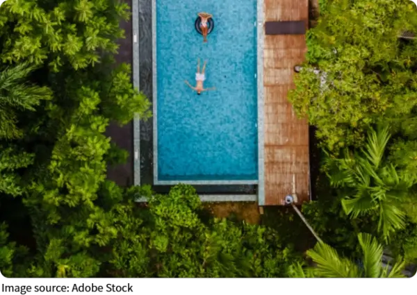 Камень, кварц и другие экологичные материалы часто используют для конструкции и отделки. Они не только красивы, но и помогают бассейну органично сливаться с окружающей природой.