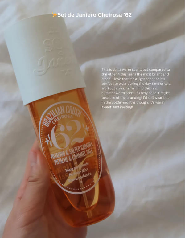 While it still carries warmth and sweetness, this scent feels the most bright and fresh of the bunch. It’s light, cheerful, and somehow makes you think of sunshine even on cool days. Ideal for daytime outings or a quick refresh before heading to a workout. It straddles the line between summer and fall, making it versatile year-round.