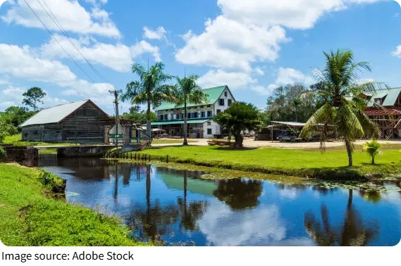 Paramaribo lies at 5°52′ north latitude and 55°10′ west longitude, with an elevation of just 3 meters. Its flat landscape makes walking or biking very easy. The Suriname River is central to daily life: ferries connect nearby towns like Meerzorg ($1–$2 per trip), while cargo boats move goods up and down the river. A riverside walk gives us the perfect combination of scenic views, bustling local markets, and street vendors selling fresh fruit, snacks, and souvenirs.