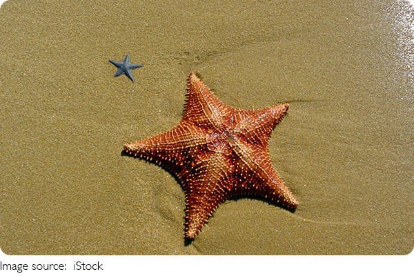 Морские звезды относятся к типу иглокожих. В отличие от многих животных, они могут потерять одну или несколько рук из-за нападений хищников или несчастных случаев и при этом выжить. Но поразительнее всего — их способность восстанавливать не только руку, а иногда целую новую морскую звезду из одного оторванного луча.
