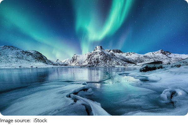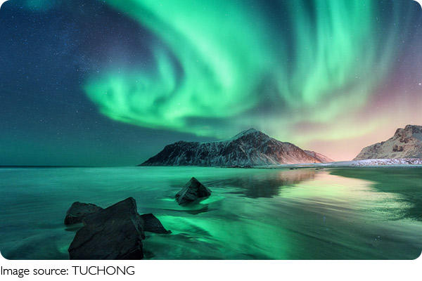 Северное сияние — это природное световое явление, которое чаще всего наблюдается в высоких широтах, таких как Норвегия, Аляска, Канада и Исландия. Оно возникает из-за взаимодействия заряженных частиц Солнца с магнитным полем Земли. Эти огни могут принимать форму занавесов, спиралей или лучей, окрашенных в яркие зелёные, красные, фиолетовые и синие оттенки, танцующих в ночном небе.