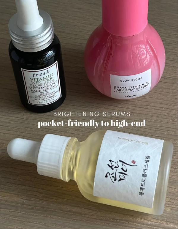 Whether you're sticking to a budget or ready to splurge, there's an option for everyone. Here are three brightening serums I've been enjoying lately, each at a different price point.