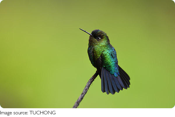 One of the most fascinating features of bright green hummingbirds is their ability to hover in midair. Using a rapid figure-eight wing motion, they can remain perfectly still while feeding, which allows them to reach nectar deep inside flowers without landing. This skill makes them stand out from most other birds. The soft buzzing produced by their wings is not only charming for us to hear, but also communicates presence to other birds, marking their territory or signaling warning.