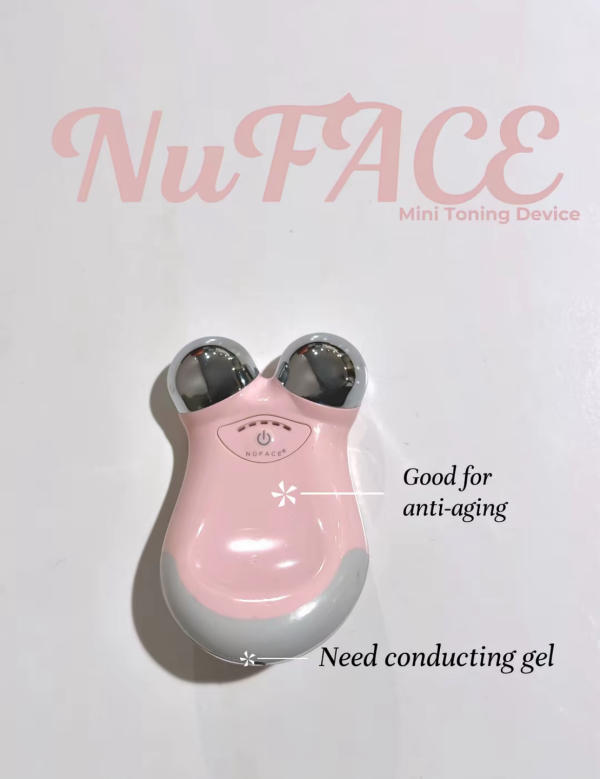 The NuFACE Mini is a well-known microcurrent tool designed to lift and sculpt the face. At first, I enjoyed using it because it gave my face a more defined look after each session. It comes with a small tube of conductive gel, which is essential for use—otherwise, the microcurrent can sting. The gel itself is quite pricey, so I often substitute with more affordable options like aloe vera or ultrasound gel.