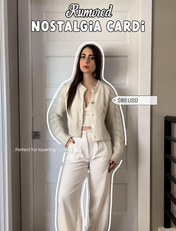A white cardigan is a must-have for layering in cooler months. This Rumored piece is incredibly soft against the skin, making it ideal for comfortable, stylish layering. It pairs perfectly over tops and dresses for a chic, effortless look.