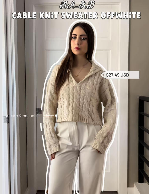4. NA-KD – Cable Knit Sweater in Off-White
