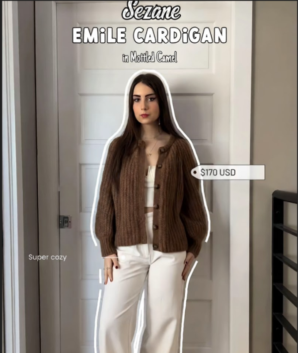 1. Sézane – Emile Cardigan in Mottled Camel