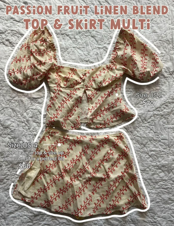 2. Passion Fruit Linen Blend Top + Skirt – Multi