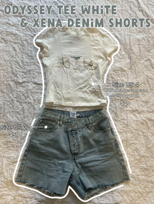 3. Odyssey Tee – White + Zena Denim Shorts