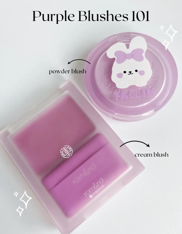For those seeking a subtle glow, the Rom&nd cream blush is ideal for a soft, everyday lavender hint. If you want a slightly more customizable option, the I’M MEME powder blush allows layering to achieve the desired intensity. Both blushes are beginner-friendly ways to experiment with purple tones while keeping the look natural and flattering.
