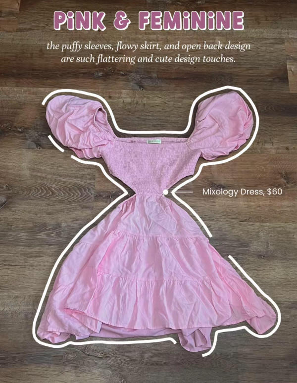 The ultimate feminine summer dress. Puffy sleeves and a full skirt create a playful, Barbie-inspired silhouette, while the open back keeps it breezy and flattering on warm days.
