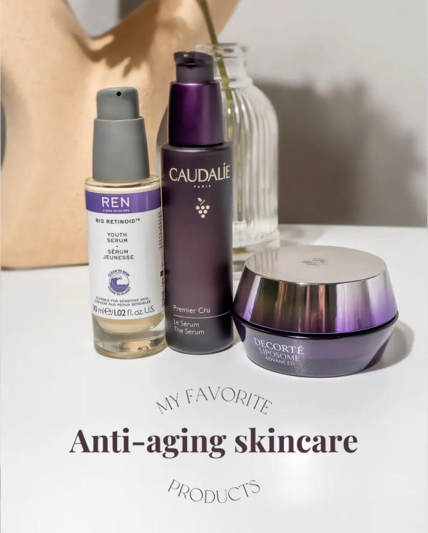 Anti-aging skincare is all about consistency and choosing products that target multiple concerns. Caudalie Premier Cru Serum works on fine lines and radiance, REN Bio Retinoid supports barrier health and skin renewal, and Decorté Liposome Cream provides overnight repair and deep hydration. Together, these products make a complete routine for maintaining youthful, healthy-looking skin!