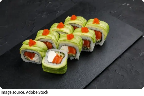 Salmon, tuna, eel, and shrimp are frequent choices for sushi, but chefs often get creative, adding other seafood like scallops, sea urchin, and squid.