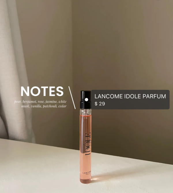 Idôle is the fragrance I turn to when I want something fresh yet sophisticated. The citrus and pear opening gives it a bright, modern energy, while rose, jasmine, and white musk add a soft, floral heart.