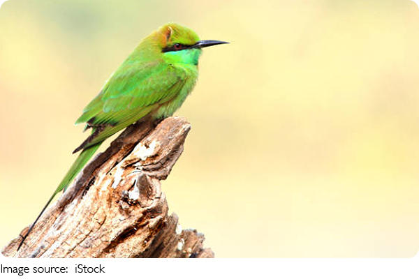 Picture a small, vibrant bird perched elegantly on a thin branch, its bright feathers glinting in the sunlight. The Asian Green Bee-Eater is a true jewel of the skies, drawing our attention with its striking colors, agile body, and alert posture.