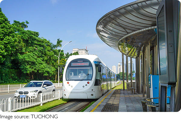 В отличие от систем с исключительным правом проезда, таких как метро и легкорельсовый транспорт, трамваи смешанного типа: трамваи, автобусы, частные автомобили, велосипеды и пешеходы движутся параллельно по одной дороге.