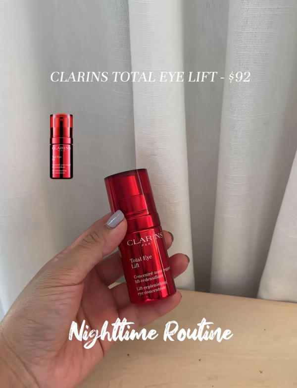 Evening routines are about repair and restoration. At night, I focus on products that target fine lines and firmness. Clarins Total Eye Lift is my current favorite. It helps tighten and lift the under-eye area while brightening dark circles. Consistent use reduces puffiness and promotes smoother skin, making morning makeup easier and lighter.