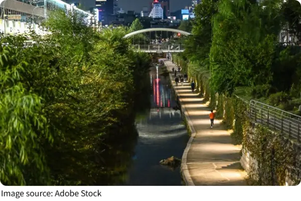 Public park pavers: In Seoul Forest, pathways use interlocking tiles made with the technology. Rainwater doesn't wash away the carbon—it's locked in mineral form, so it stays put even after decades of foot traffic.