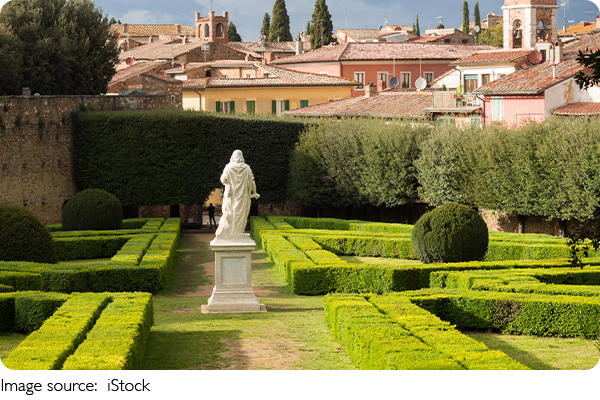 The formal gardens feature box hedges, cypress alleys, pergolas, and fountains, while the surrounding hills host olive groves and orchards. A farm-to-table restaurant on site showcases estate produce in seasonal menus; allow €35–€60 per person for a multi-course lunch with house specialties and olive-oil-dressed vegetables. Advance reservations are strongly advised, especially in summer.